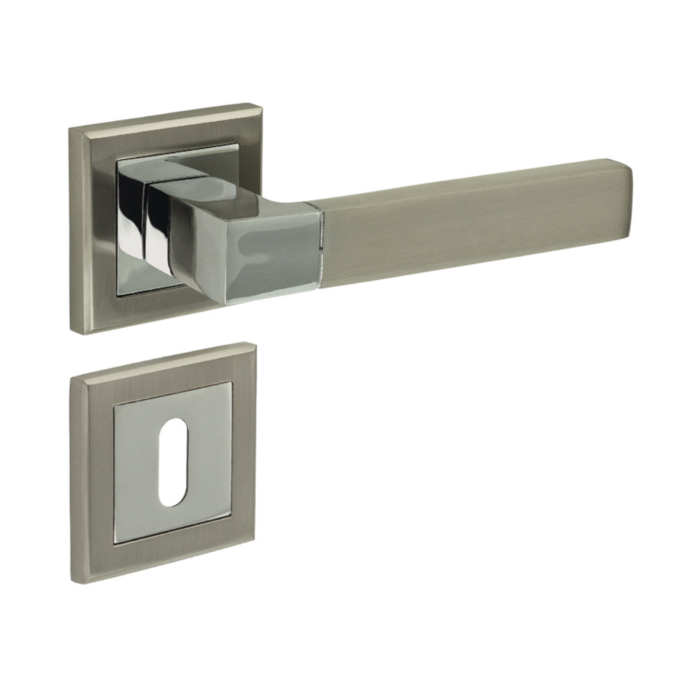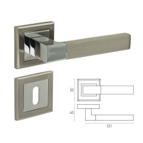 Beltéri kilincs szett (fogantyú + rozetta), alumínium, szatén nikkel A1348