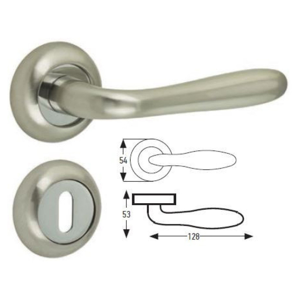 Beltéri kilincs szett (fogantyú + rozetta), alumínium, szatén nikkel A1378