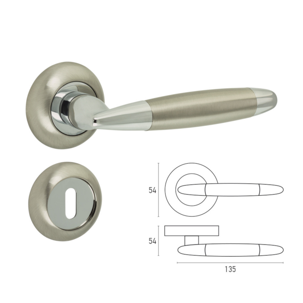 Beltéri kilincs szett (fogantyú + rozetta), alumínium, szatén nikkel/nikkel Z1603
